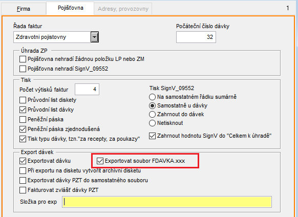 Nastavíme v číselníku zdravotních pojišťoven (menu Číselníky volba Zdravotní pojišťovny) na kartě zapnout označený přepínač.