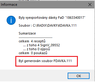 Při vyúčtování receptů a poukazů na ZP je možné generovat společně se souborem KDAVKA.xxx i soubor FDAVKA.xxx.