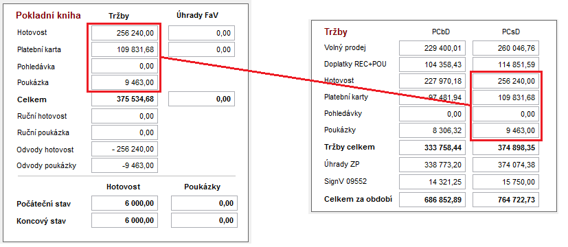 B/ navazují stavy skladu a stavy hotovosti na předchozí období C/ jsou konzistentní tržby oproti pokladní knize