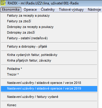 Měsiční uzávěrka se provádí ve formuláři Měsíční uzávěrka období, který je dostupný v modulu Ekonomika.