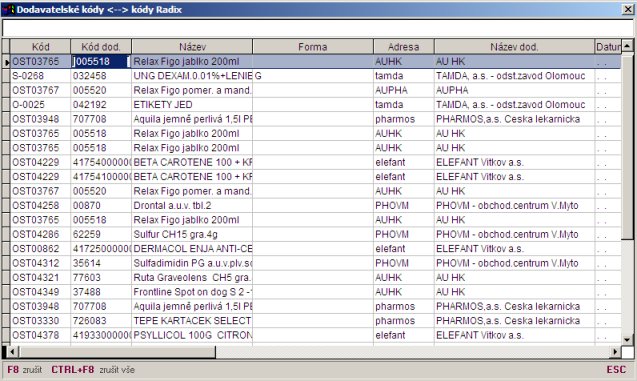 Převodní tabulka dodavatelských kódů a kódu skladových poloek se pouívá při importu dodacích listů. Jednotlivé záznamy, v případě chybného párování, ke kterému dochází při zpracování elektronických dodacích listů, lze mazat.