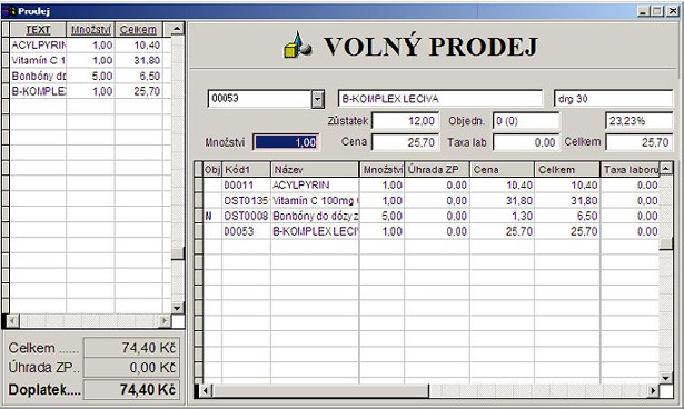 Jestliže máte aktivován věrnostní systém, lze do tohoto pole zadávat identifikační číslo ze zákazníkovi PHARMACARD. Podrobnější informace naleznete v kapitole Obsluha zákazníka. Jestliže nemáte zboží označeno čárovým kódem, či z jiného důvodu potřebujete při výdeji hledat dle prodejní ceny s DPH. Aktivujte v programu vyhledávání dle PCsD (Číselníky - Nastavení lékárny, karta Výdej, parametr "filtr podle jedn. PCsD"). Podrobnější informace naleznete v kapitole Návody, části Vyhledávání zboží při výdeji dle PCsD