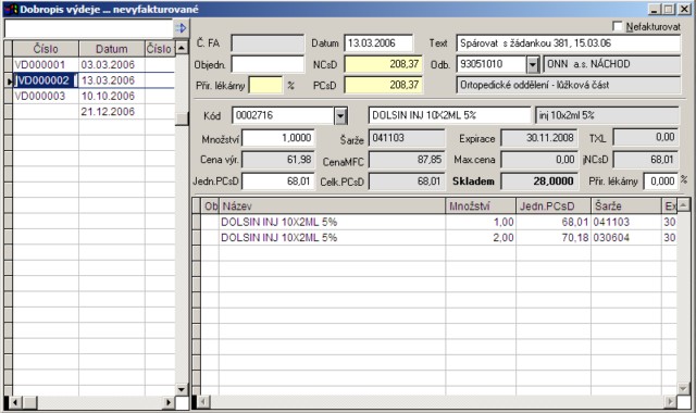 Hledání vybrané skladové položky ve vystavených dokladech