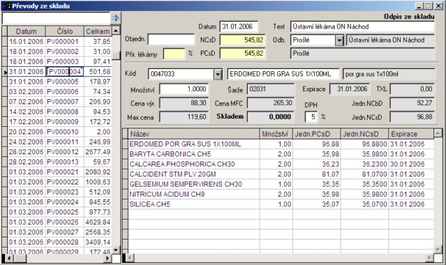 Doklad Převod ze skladu - všechny