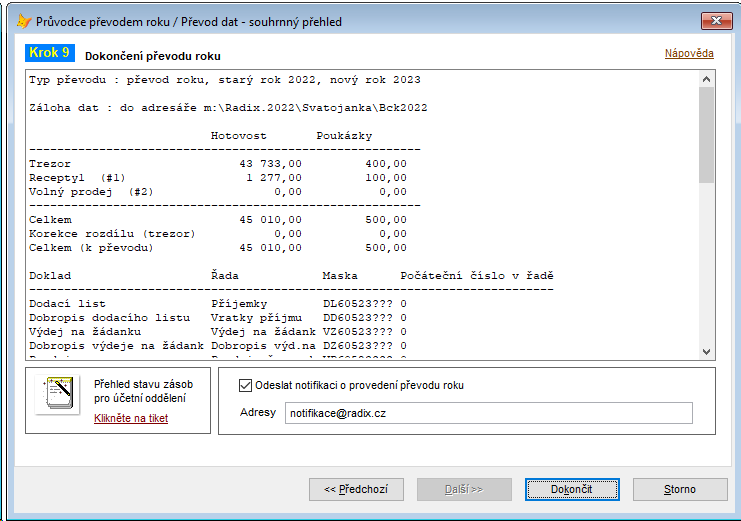K dokončení převodu roku pokračujte tlačítkem [ Dokončit ].